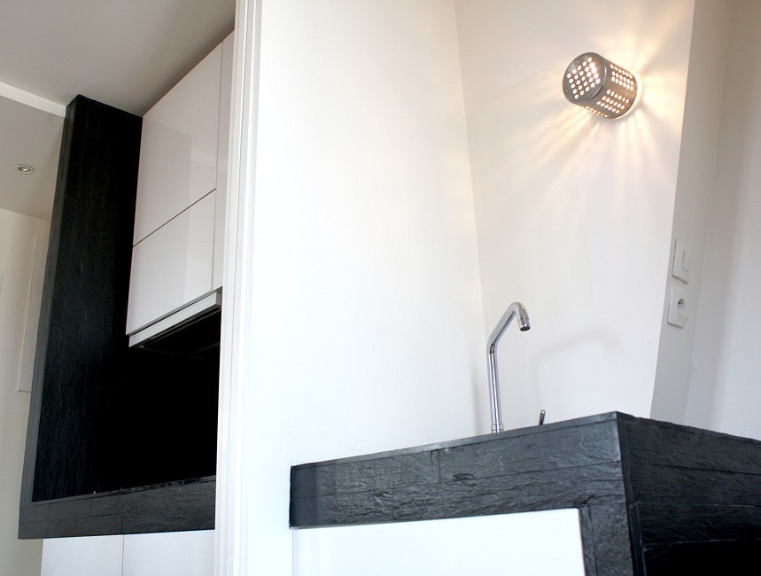 Dans cet espace restreint, l’enjeu du projet fut la flexibilité : grâce à des cloisons mobiles, les espaces peuvent être mutualisés.