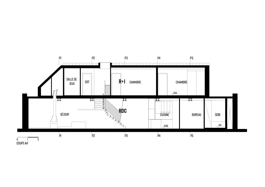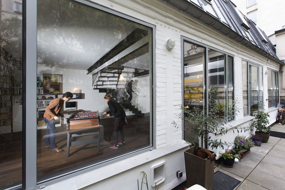 Le défi majeur du projet fut de réaliser l’ensemble des travaux en trois mois et demi, sans avoir pu faire de sondage destructif en amont. Les structures du plancher haut avaient nettement fléchie et nécessitaient une reprise complète, elles ont été renforcées par l’addition de profilés métalliques, le niveau du plancher supérieur a été rattrapé par la mise en place d’une chape sèche.