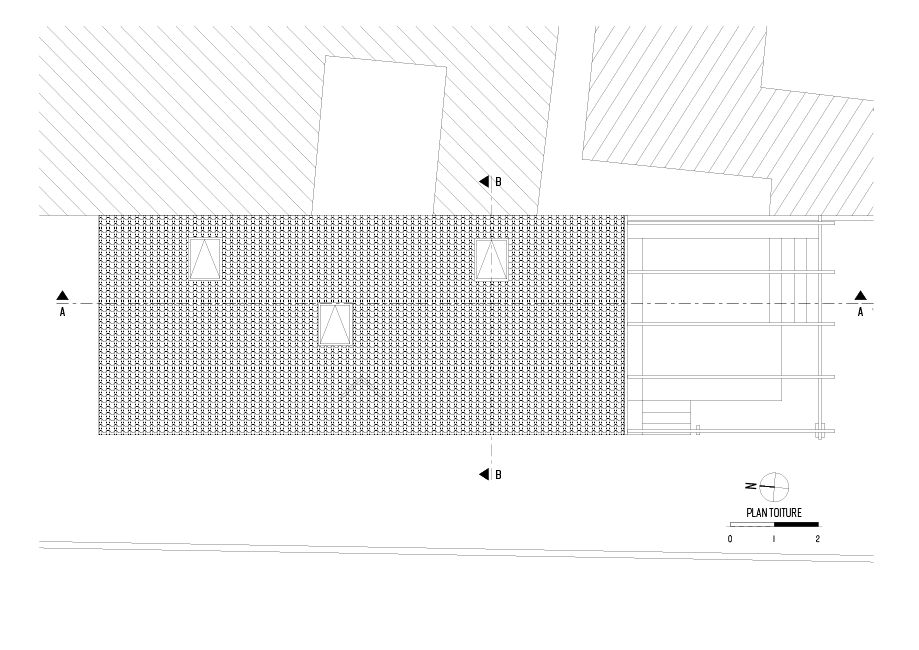A l’opposé des choix les plus fréquents de l’atelier d’architecture Florence Gaudin, la surélévation de l’enveloppe bâtie est traitée en mimétisme avec l’écriture architecturale de l’atelier existant. Ce choix bien qu inhabitituel correspond néanmoins a une posture de l’atelier : faire avec. Pas d’opposition systématique, pas de « geste » architectural gratuit mais une réponse adaptée.
