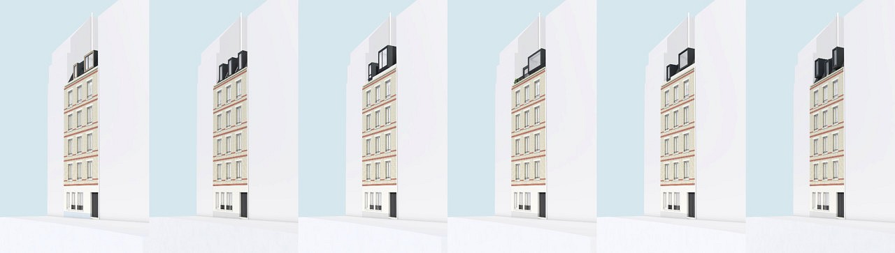 Faire avec le contexte, au sens large, c’est-à-dire l’appréhender, l’intégrer, l’utiliser comme un moteur de projet, non-pas dans un rapport causal ou déductif, mais comme source. Ici de contexte et les contraintes urbanistes et réglementaire ont été l’occasion de jouer avec la volumétrie de cette étude de surélévation, s’inscrivant tantôt en rupture, tantôt en mimétisme.
